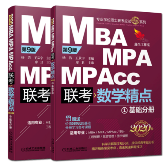 1、管联数学用书点击购买:《2020版联考机工版MBA/MPA/MPAcc数学精点》(基础分册+强化分册)