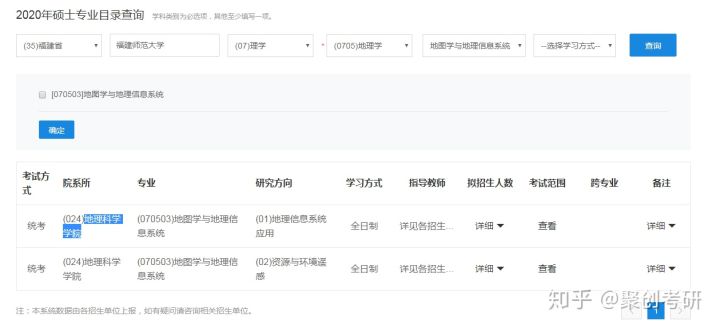 图8:福师大2020地图与地理信息系统招生专业目录节选