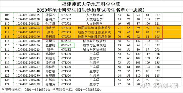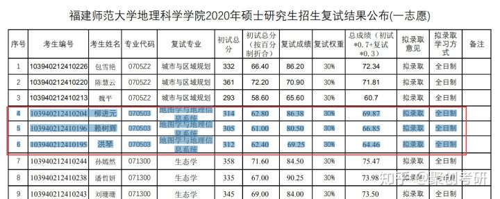 图5:福建师范大学地理科学学院2020年硕士研究生招生复试结果公布(一志愿)