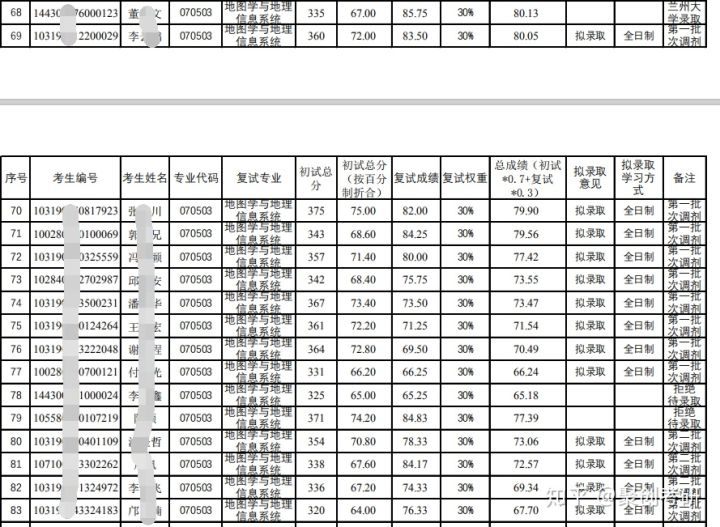 图6:福师大2019地图学与地理信息系统复试名单节选