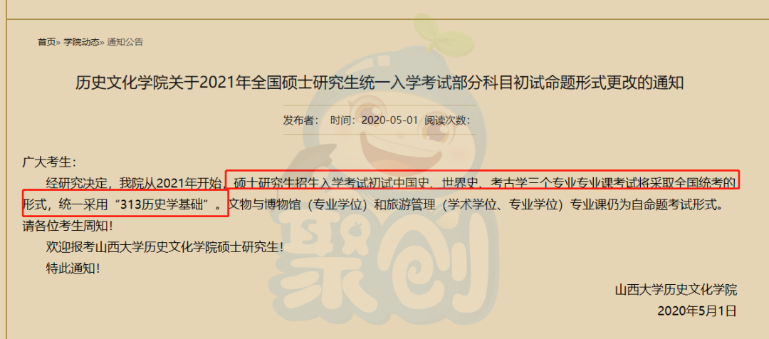 从2021年开始,硕士研究生招生入学考试初试中国史、世界史、考古学三个专业专业课考试将采取全国统考的形式,统一采用“313历史学基础”。