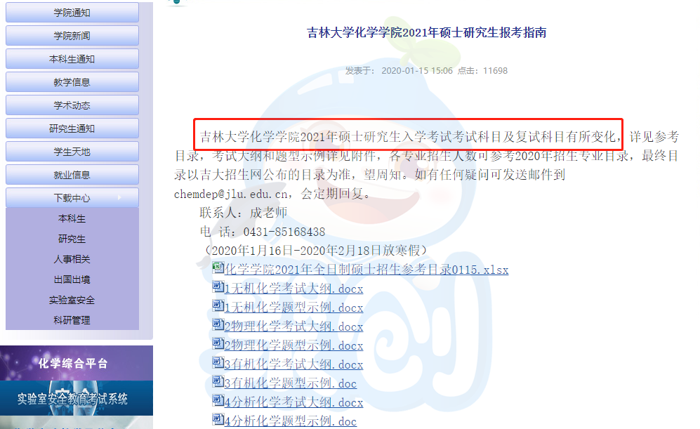 吉林大学化学学院公布2021年硕士研究生报考指南,其中入学考试考试科目及复试科目有所变化。