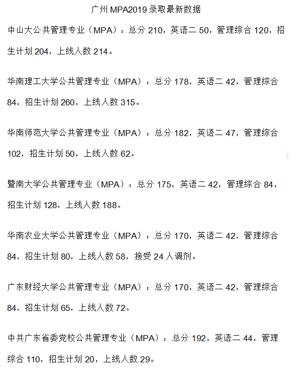 (3)为了方便报考公共管理硕士MPA的考生做院校专业选择,聚创暨南大学考研整理了2019年广东各高校公共管理硕士MPA的数据,大家可以跟暨大做下对比:
