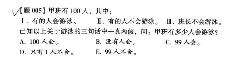 以上是聚创考研网为考生整理的"2021年管理类考研:逻辑部分-关于游泳三句话的判断Part.79"的相关考研信息,希望对大家考研备考有所帮助! 备考过程中如有疑问,也可以添加老师微信juchuang911进行咨询。
