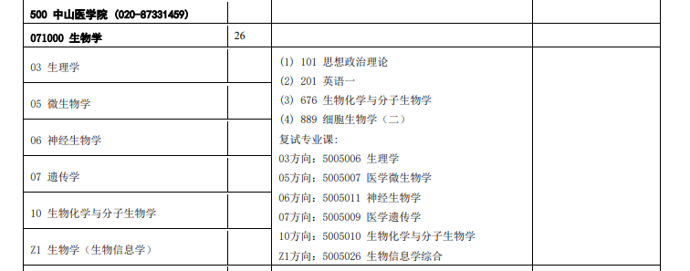 04 病理学与病理生理学方向:初试科目去掉一个可选考科目,678 生物医学综合。