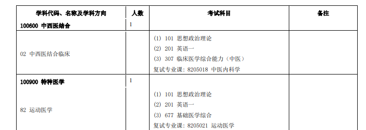 820附属第三医院增加:100600中西医结合、100900特种医学