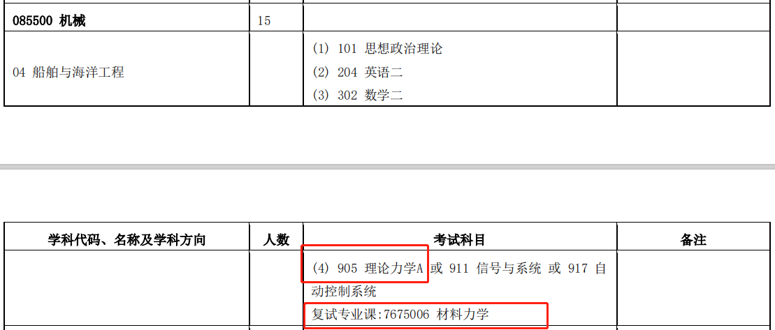 ④085800能源动力:复试专业课改考流体力学或材料力学或航空航天专业综合