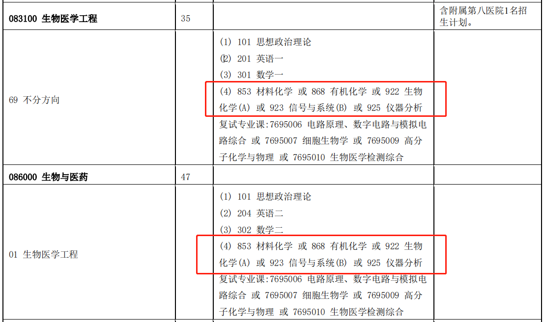 ①083100生物医学工程、086000生物与医药:初试科目可选科目有轻微变化;