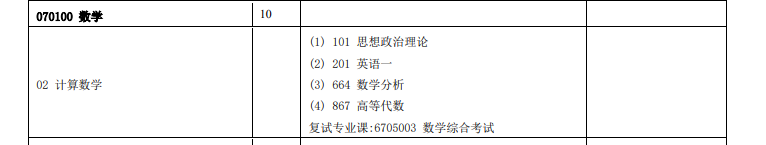 ①070110数学02计算数学:专业课由682 数学分析(A)和891 高等代数(A)改考664数学分析和867高等代数