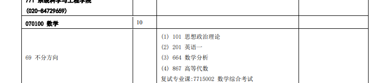①070110数学69不分方向:专业课由682 数学分析(A)和891 高等代数(A)改考664数学分析和867高等代数