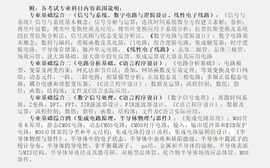 初试专业考试科目:电子学院招生的两个一级学术性研究生:电子科学与技术一级学科、信息与通信工程一级学科、电子信息专业硕士的四个方向初试专业科目均为:专业基础综合一(一份试卷,内容包含信号与系统、数字电路与逻辑设计、线性电子线路三门本科专业基础课程内容)。