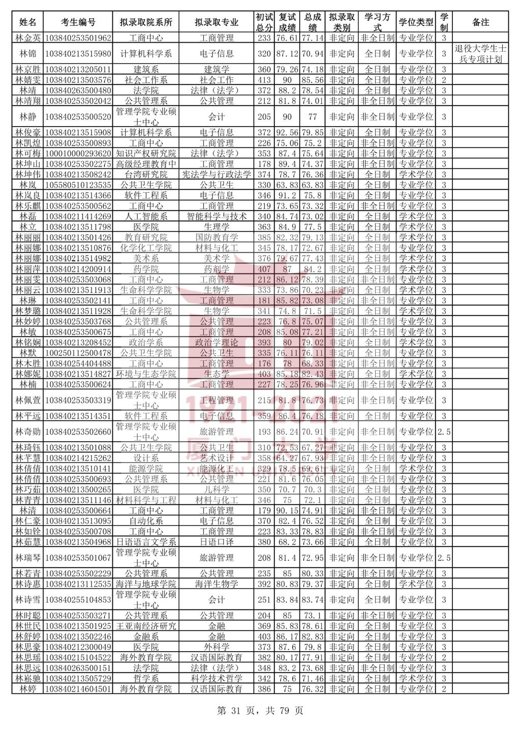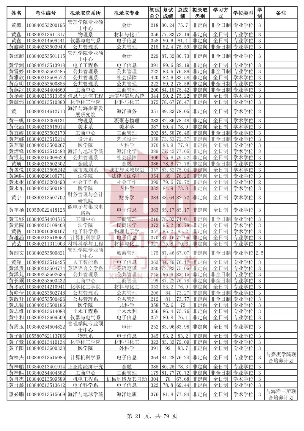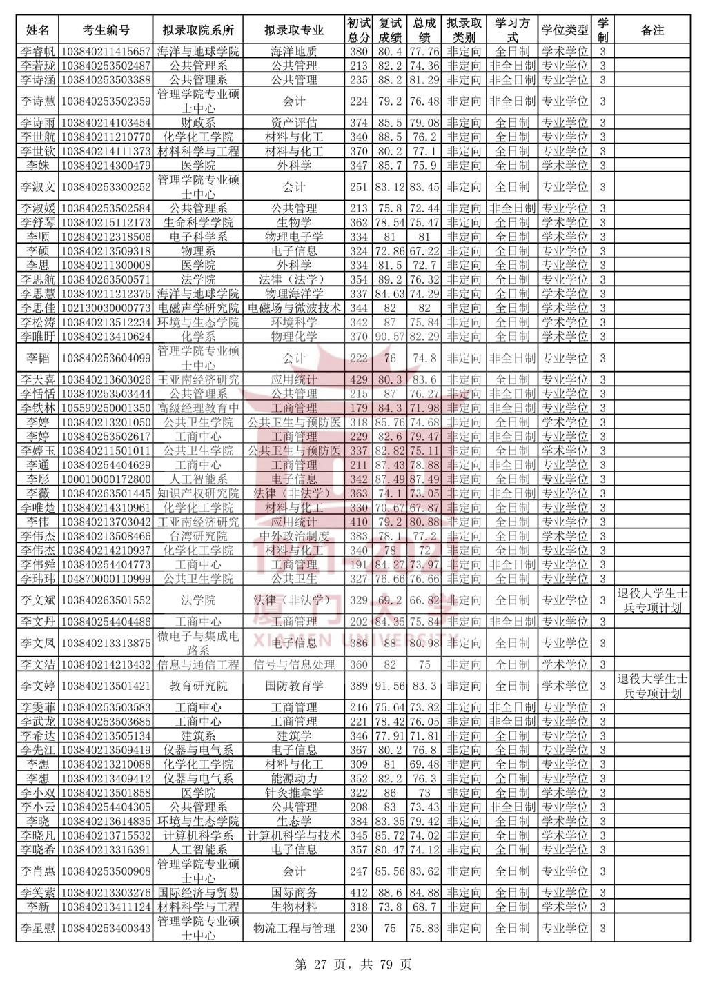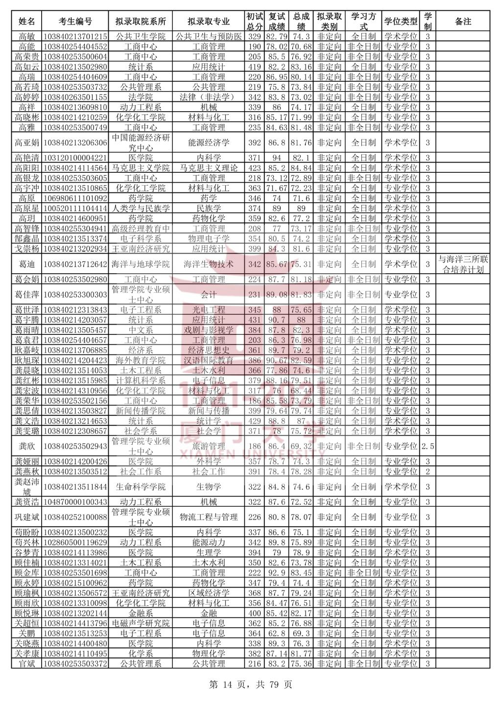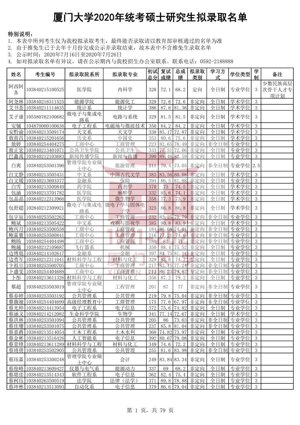 以上是聚创考研网为考生整理的"厦门大学2020年统考硕士研究生拟录取名单公示"的相关考研信息,希望对大家考研备考有所帮助! 备考过程中如有疑问,也可以添加老师微信juchuang911进行咨询。