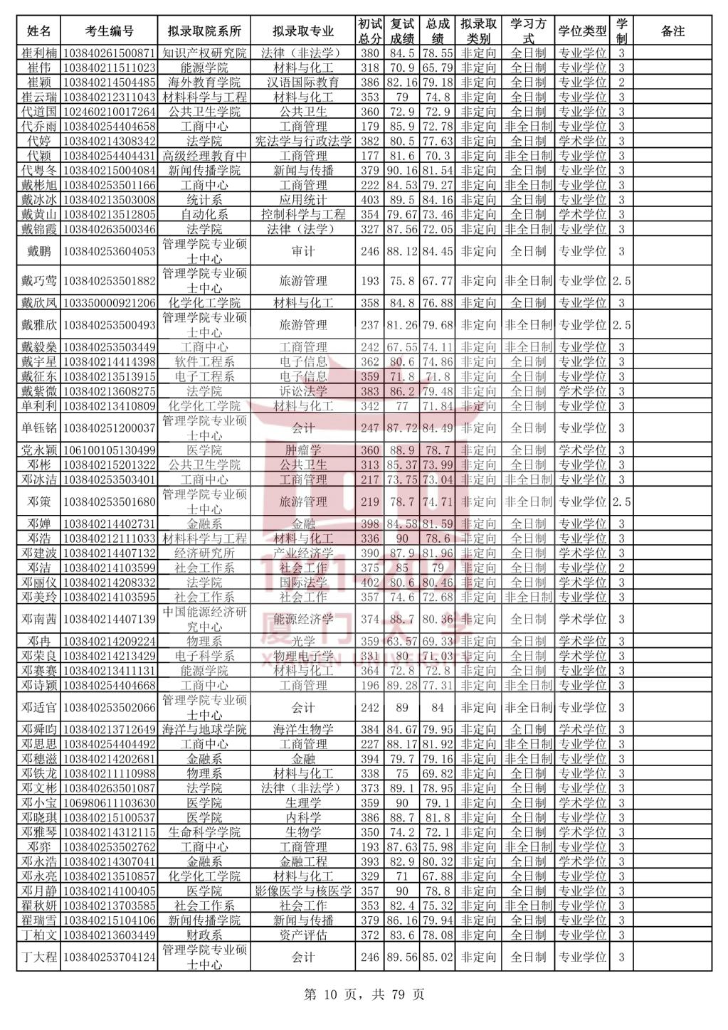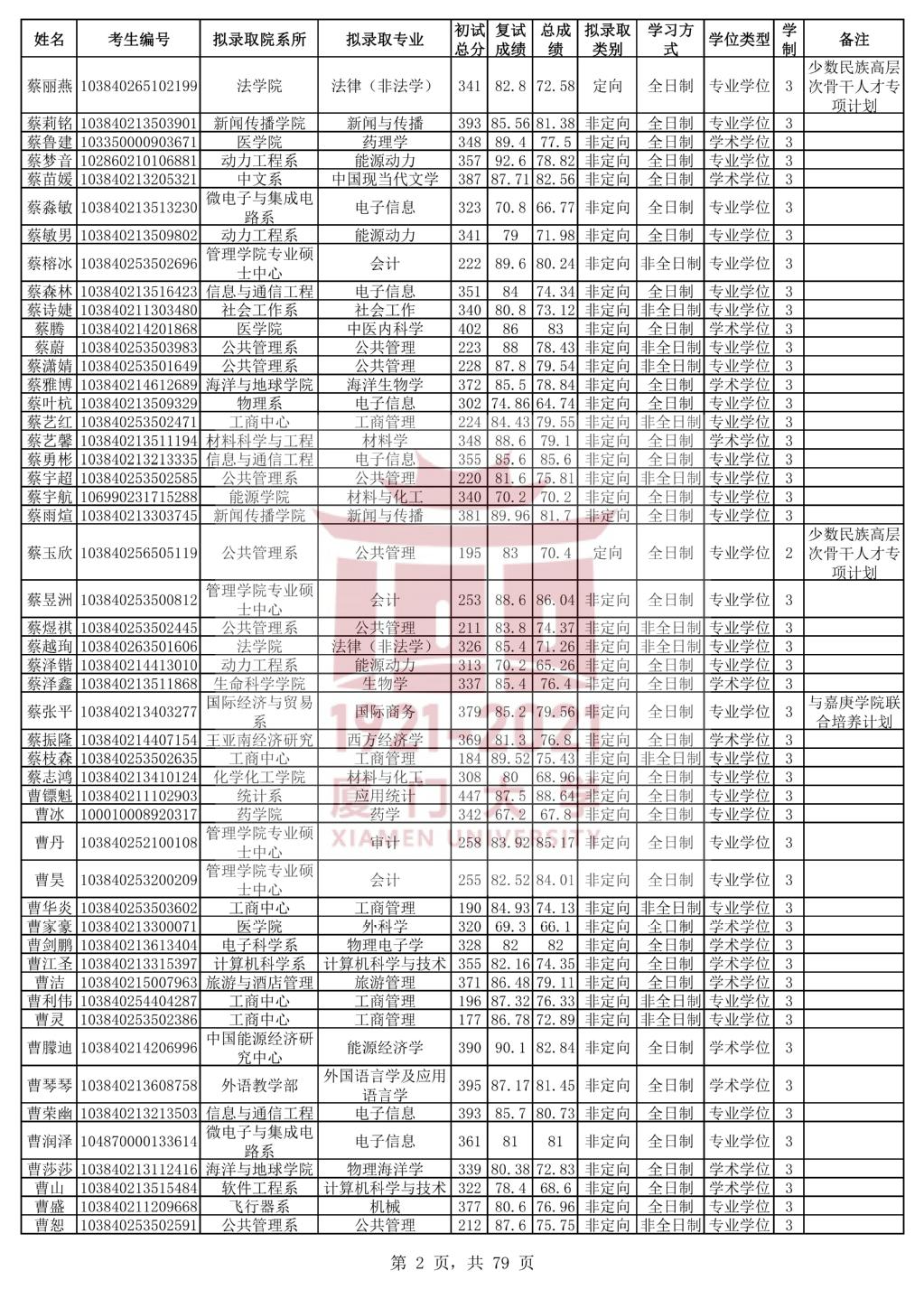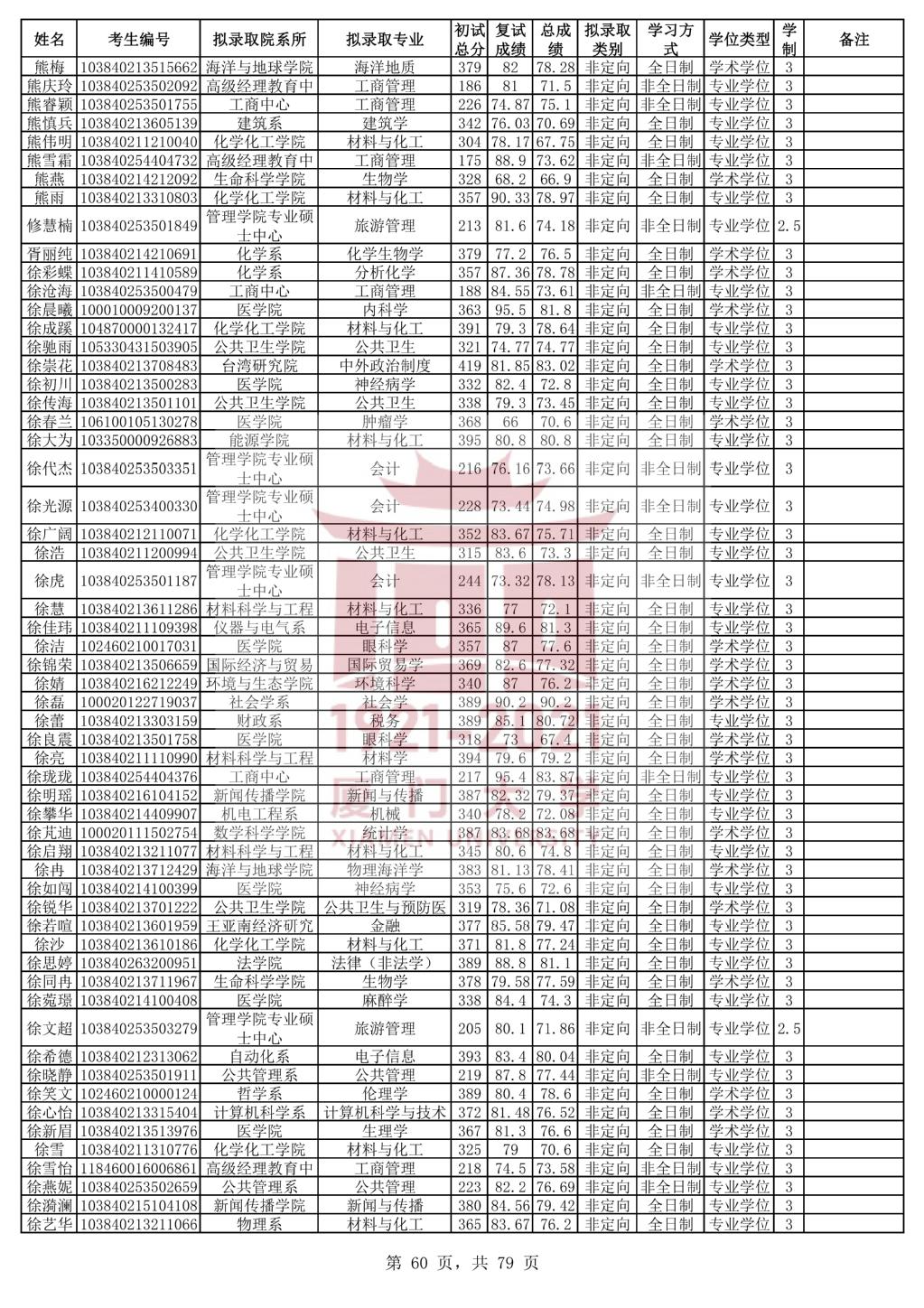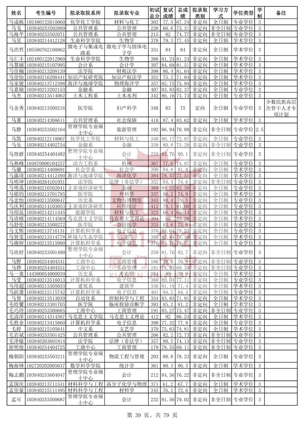 据悉,厦门大学2020年统考硕士研究生拟录取名单公示已公布,聚创考研网小编为大家整理相关内容,具体如下: