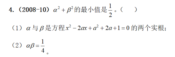 条件充分性判断题共有A、B、C、D、E五个固定的选项作为判断结果,阅读条件(1)和(2)后选择: