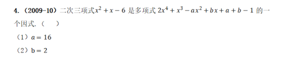 条件充分性判断题共有A、B、C、D、E五个固定的选项作为判断结果,阅读条件(1)和(2)后选择: