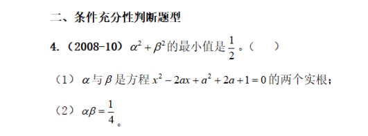 以上是聚创考研网为考生整理的"2021年管理类考研:数学部分-条件充分性判断题型Part.113"的相关考研信息,希望对大家考研备考有所帮助! 备考过程中如有疑问,也可以添加老师微信juchuang911进行咨询。