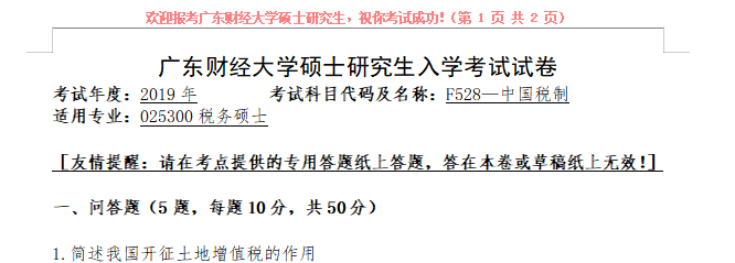 完整版请下载附件:2019年广东财经大学F528中国税制考研真题(复试)
