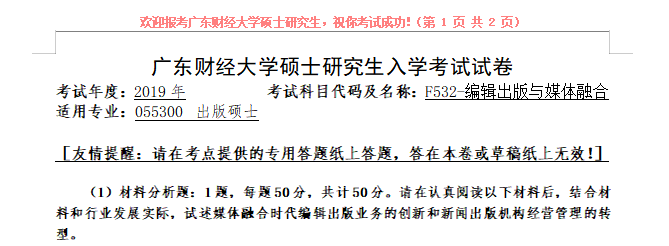 完整版请下载附件:2019年广东财经大学F532编辑出版与媒体融合考研真题(复试)