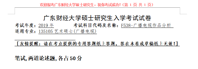 完整版请下载附件:2019年广东财经大学F538广播电视作品分析考研真题(复试)
