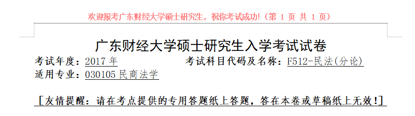 以上是聚创考研网为考生整理的"2017年广东财经大学F512民法(分论)考研真题(复试)"的相关考研信息,希望对大家考研备考有所帮助! 备考过程中如有疑问,也可以添加老师微信juchuang911进行咨询。