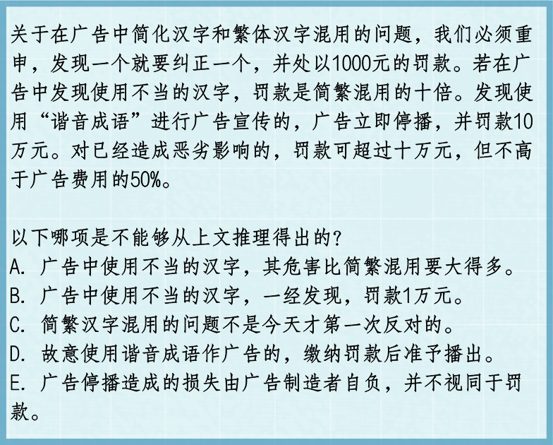 以上是聚创考研网为考生整理的"2021年管理类考研:逻辑部分-广告中简化和繁体汉字混用的问题Part.125"的相关考研信息,希望对大家考研备考有所帮助! 备考过程中如有疑问,也可以添加老师微信juchuang911进行咨询。