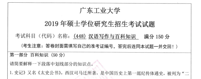 完整版请下载附件:2019年广东工业大学448汉语写作与百科知识考研真题(完整版)