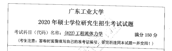 考研学习中,专业课占的分值较大。报考院校专业的考研专业课真题是专业课复习中必不可少的资料。聚创广东工业大学考研小编为大家整理了2020年广东工业大学822工程流体力学考研真题(完整版),并且可以提供广东工业大学考研专业课辅导,希望更多考生能够在专业课上赢得高分,升入理想的院校。