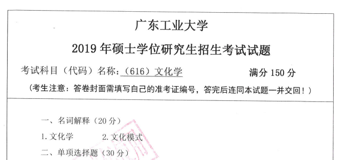 完整版请下载附件:2019年广东工业大学616文化学考研真题(完整版)