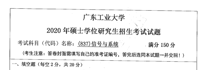 完整版请下载附件:2020年广东工业大学837信号与系统(信息工程学院)考研真题(完整版)