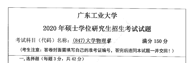 完整版请下载附件:2020年广东工业大学847大学物理学考研真题(完整版)