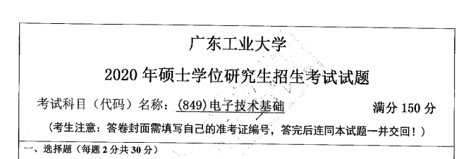 完整版请下载附件:2020年广东工业大学849电子技术基础(物理与光电工程学院)考研真题(完整版)