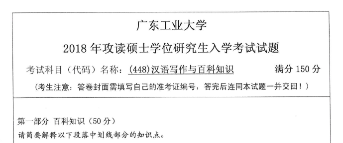 完整版请下载附件:2018年广东工业大学448汉语写作与百科知识考研真题(完整版)