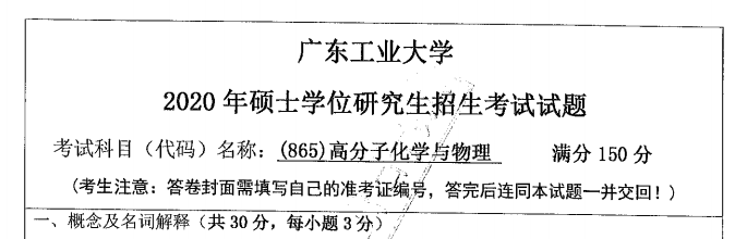 完整版请下载附件:2020年广东工业大学865高分子化学与物理考研真题(完整版)