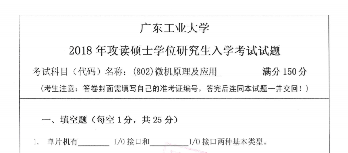 完整版请下载附件:2018年广东工业大学802微机原理及应用考研真题(完整版)