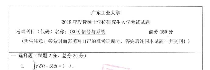 考研学习中,专业课占的分值较大。报考院校专业的考研专业课真题是专业课复习中必不可少的资料。聚创广东工业大学考研小编为大家整理了2018年广东工业大学809信号与系统考研真题(完整版),并且可以提供广东工业大学考研专业课辅导,希望更多考生能够在专业课上赢得高分,升入理想的院校。