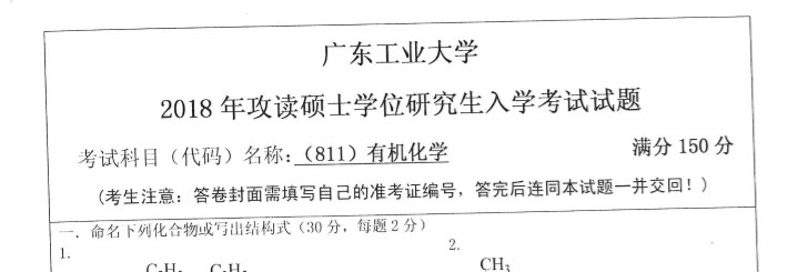 完整版请下载附件:2018年广东工业大学811有机化学考研真题(完整版)