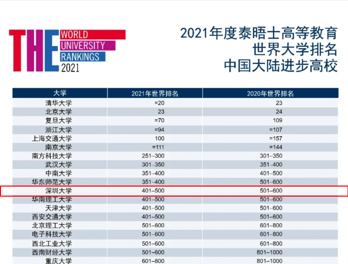 以上是聚创考研网为考生整理的"注意!2021泰晤士世界大学排名,中国这所双非院校榜上有名!"的相关考研信息,希望对大家考研备考有所帮助! 备考过程中如有疑问,也可以添加老师微信juchuang911进行咨询。