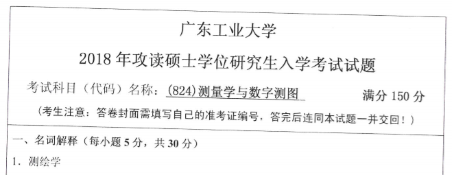 完整版请下载附件:2018年广东工业大学824测量学与数字测图考研真题(完整版)