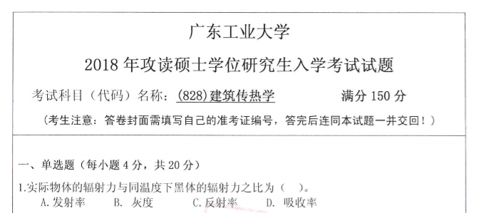 以上是聚创考研网为考生整理的"2018年广东工业大学828建筑热传学考研真题(完整版)"的相关考研信息,希望对大家考研备考有所帮助! 备考过程中如有疑问,也可以添加老师微信juchuang911进行咨询。