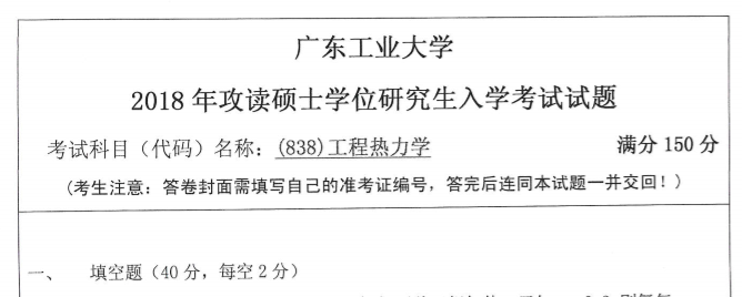 完整版请下载附件:2018年广东工业大学838工程热力学考研真题(完整版)