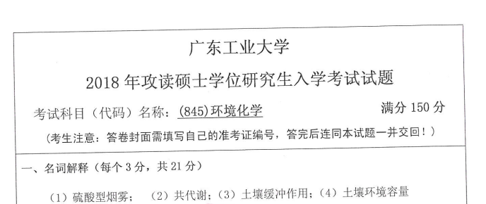 完整版请下载附件:2018年广东工业大学845环境化学考研真题(完整版)