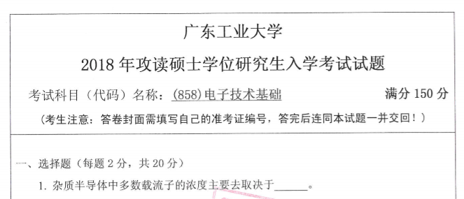 考研学习中,专业课占的分值较大。报考院校专业的考研专业课真题是专业课复习中必不可少的资料。聚创广东工业大学考研小编为大家整理了2018年广东工业大学858电子技术基础考研真题(完整版),并且可以提供广东工业大学考研专业课辅导,希望更多考生能够在专业课上赢得高分,升入理想的院校。