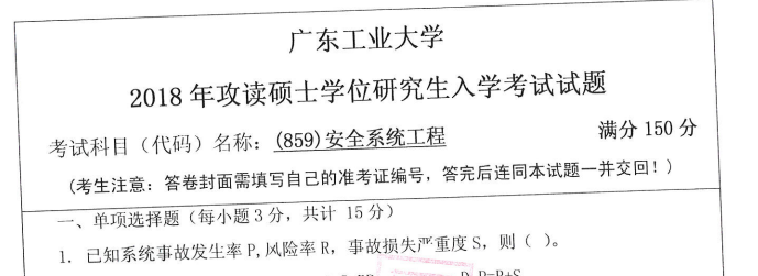 完整版请下载附件:2018年广东工业大学859安全系统工程考研真题(完整版)