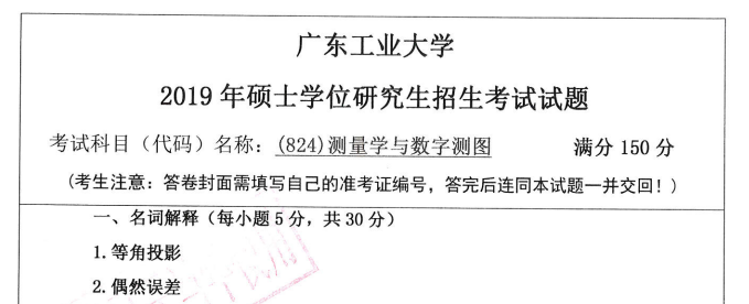 完整版请下载附件:2019年广东工业大学824测量学与数字测量考研真题(完整版)