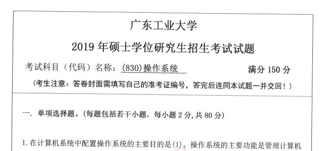 完整版请下载附件:2019年广东工业大学830操作系统考研真题(完整版)