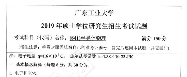 完整版请下载附件:2019年广东工业大学841半导体物理考研真题(完整版)