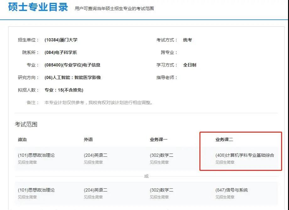 厦大电子科学系的电子信息专业考试科目由去年的903数据结构B改为408计算机学科专业基础综合。