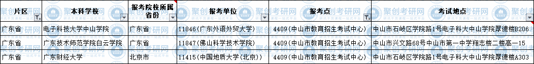 同学们可参考去年或者往年的考场安排,一般不会有改变,以下是聚创考研网整理的去年报名【4408中山市教育招生考试中心】报考点的考场信息,同学们可根据【第2列本科院校、第4列报考学校】等作为参考。