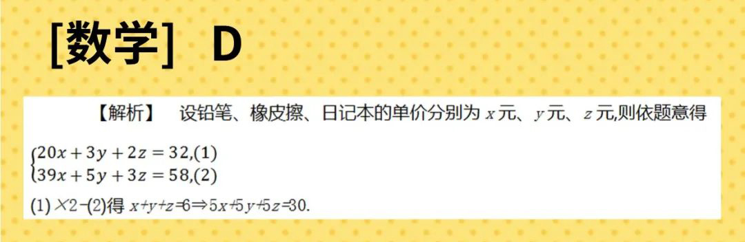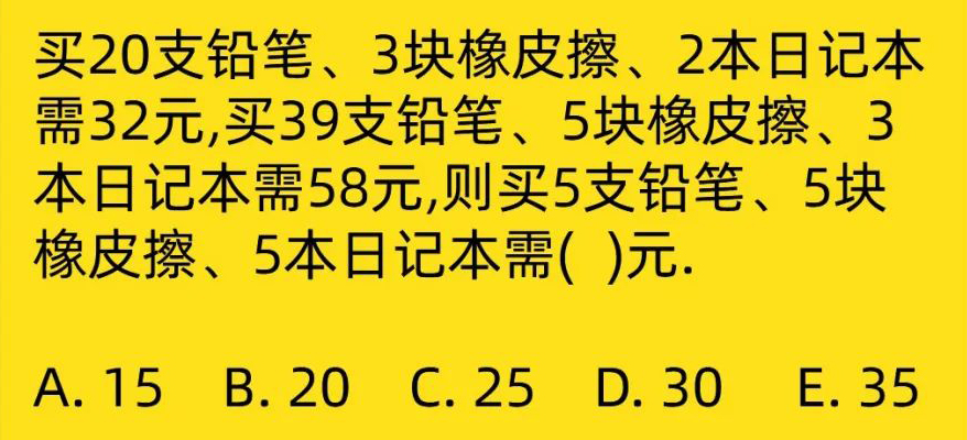 以上是聚创考研网为考生整理的"2021年管理类考研:数学部分-买铅笔、橡皮擦、日记本的金额Part.154"的相关考研信息,希望对大家考研备考有所帮助! 备考过程中如有疑问,也可以添加老师微信juchuang911进行咨询。