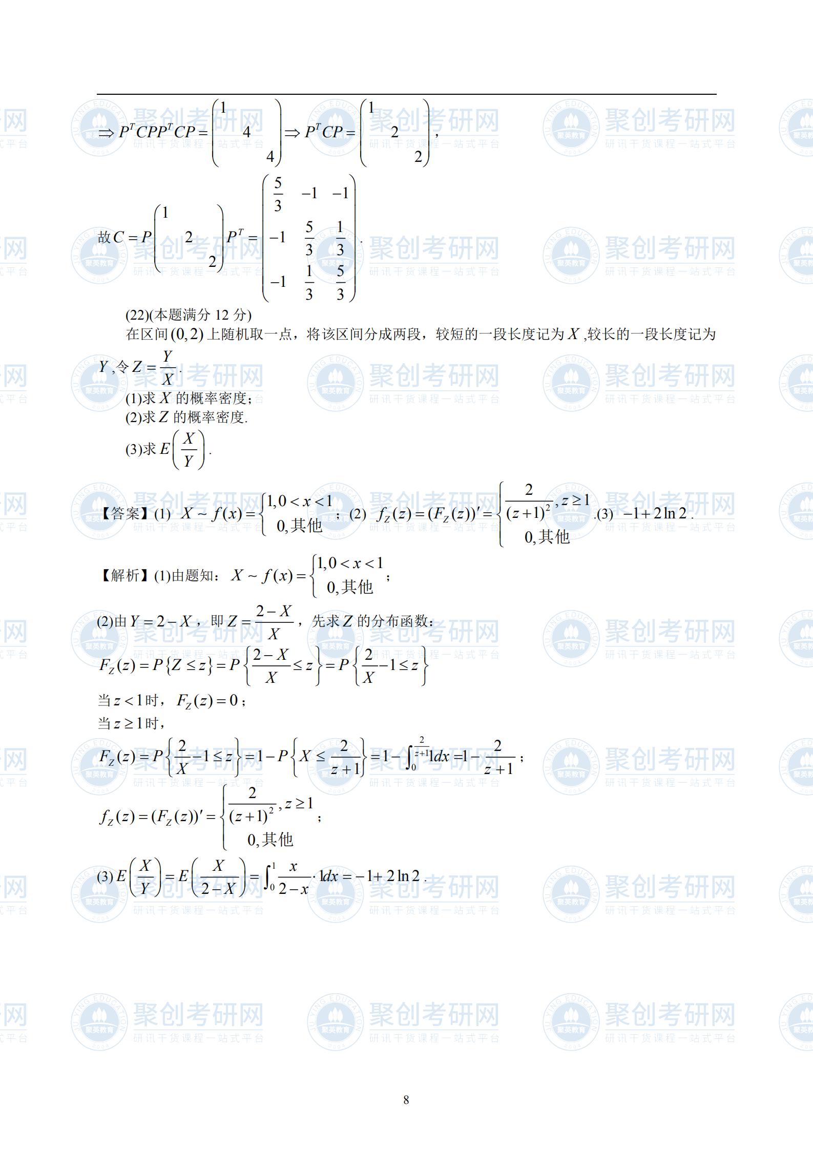聚创考研信息网小编在2021考研数学考试结束后,根据多位权威名师的解析,争分夺秒的整理发布2021年考研数学一真题及答案解析,以便帮助童靴们做好考后估分事宜。